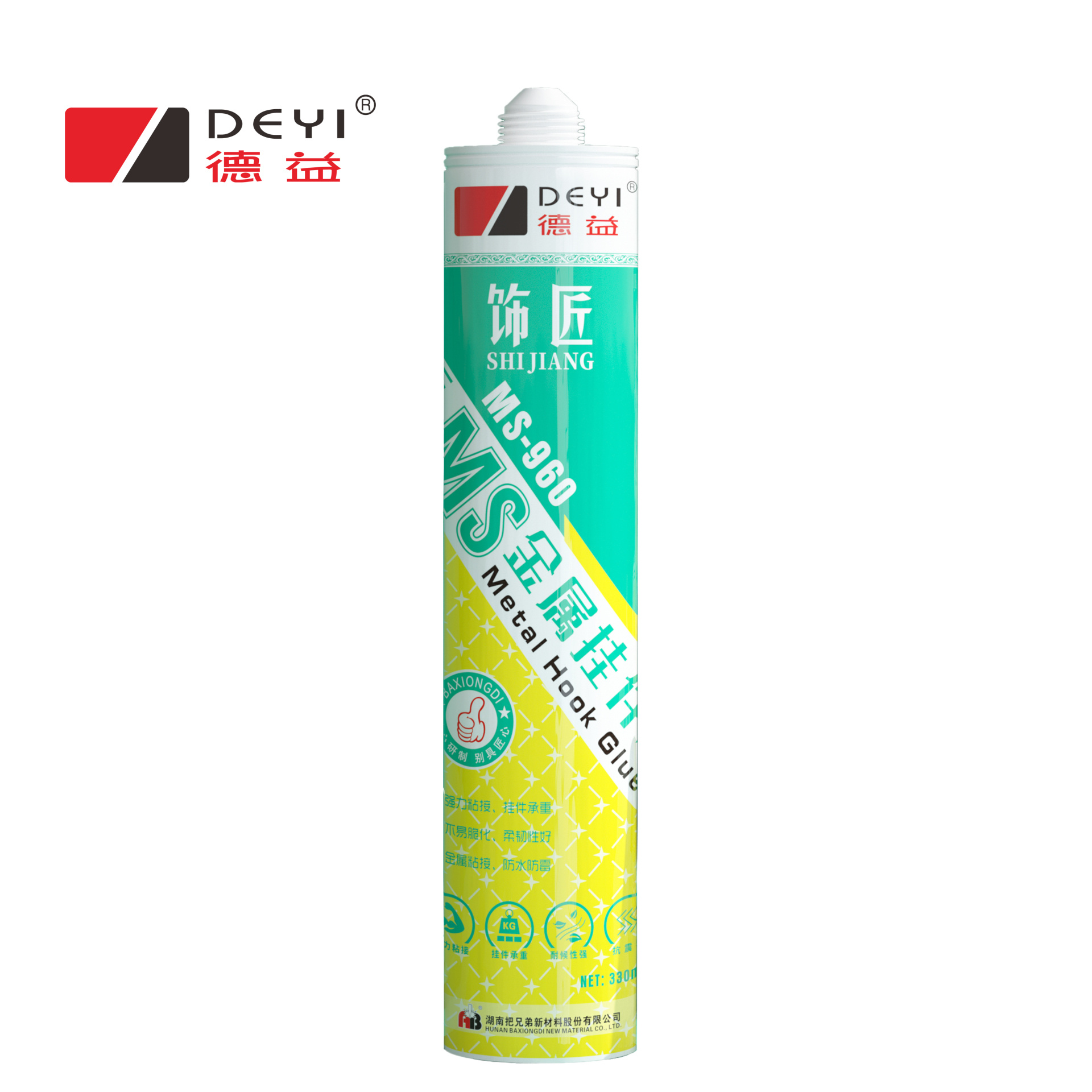 德益MS金属挂件胶是QY千亿球友会公司研制的一种单组分胶粘剂,具有新环保、粘接力强、耐候性佳、可在潮湿面或水下进行作业,胶体固化后可上色,装饰性优良等特点。